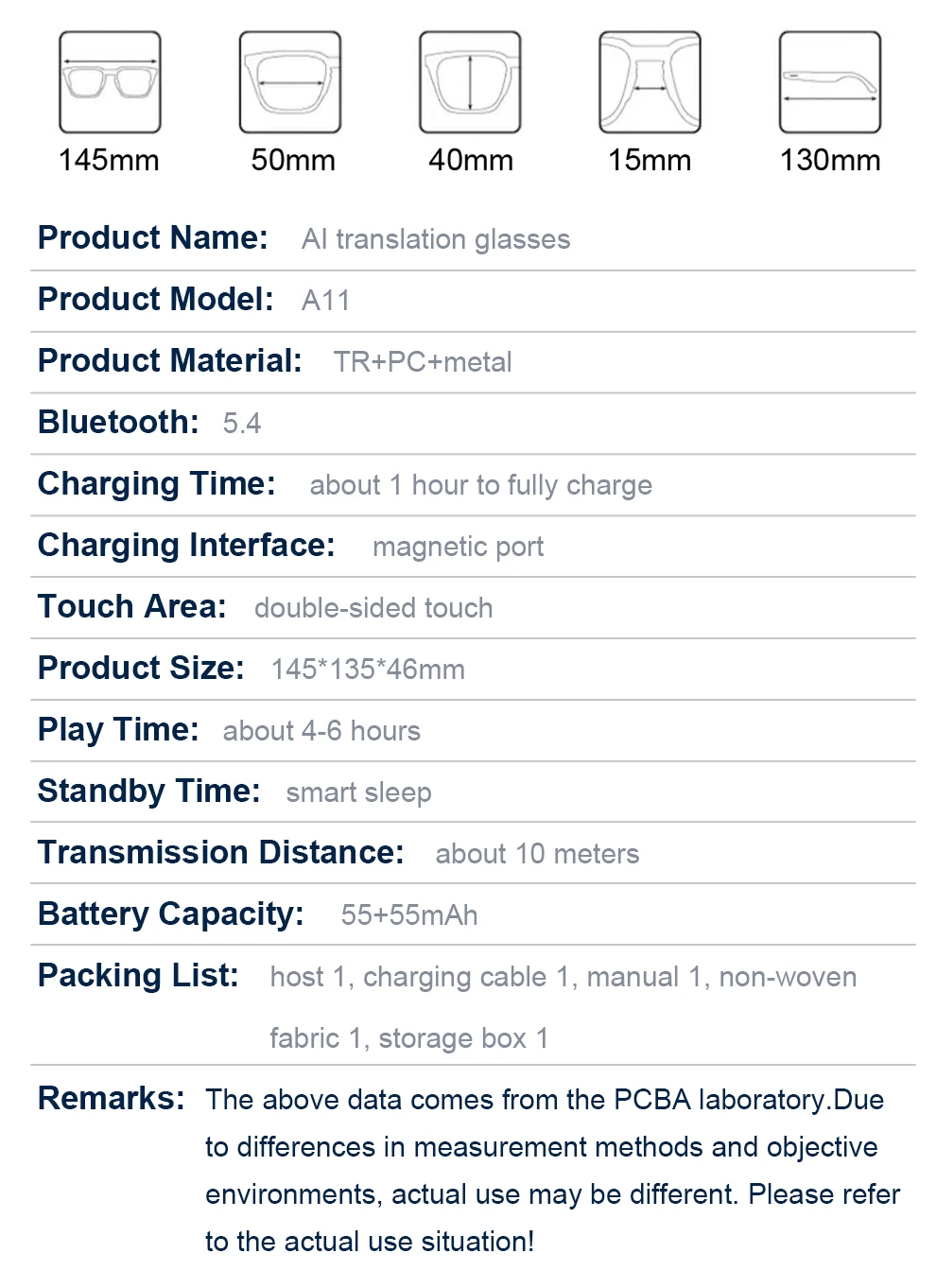 【Music & Call Glasses】: The GetD AI glasses are equipped with two 115mAh batteries. A full charge offers 15 days of standby and 11 hours listen music, 9 hours calling (at 50% volume). Charging 10 mins, 1 hour use; over-voltage and overload protection, magnetic charging and integrated design ensure IP54 water resistant