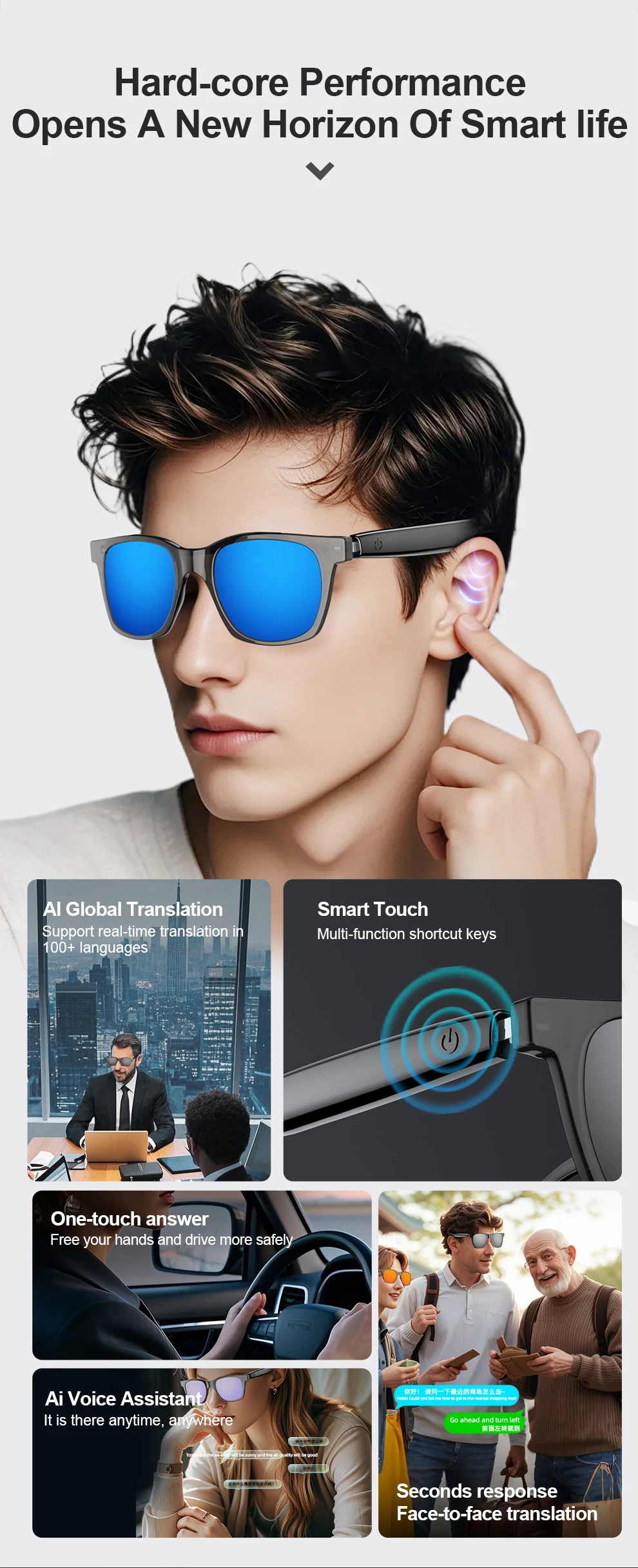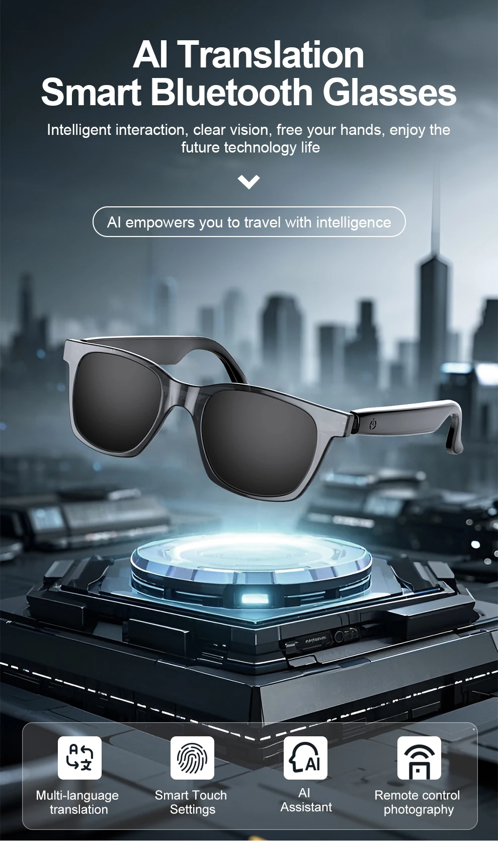 【3-IN-1 AI GLASSES】: ①Your AI Assistant powered by ChatGPT, Real-time Translation and Voice Recorder; ②A Pair of Good Anti-blue Light Glasses for Men & Women