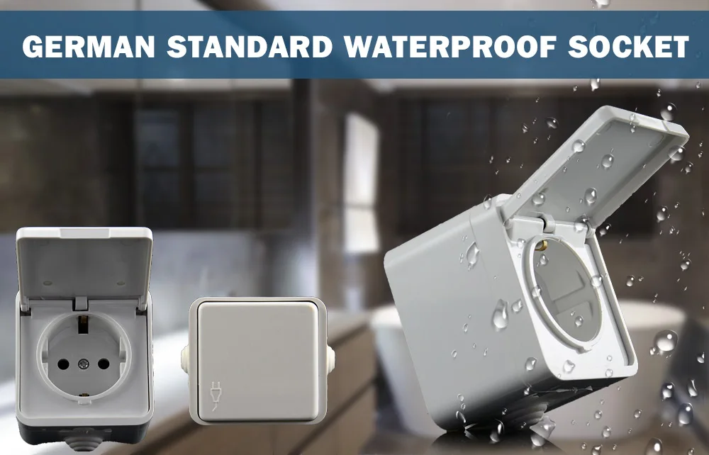 European standard power outlet IP44 level waterproof and bright outdoors cover wall socket 16A 250V