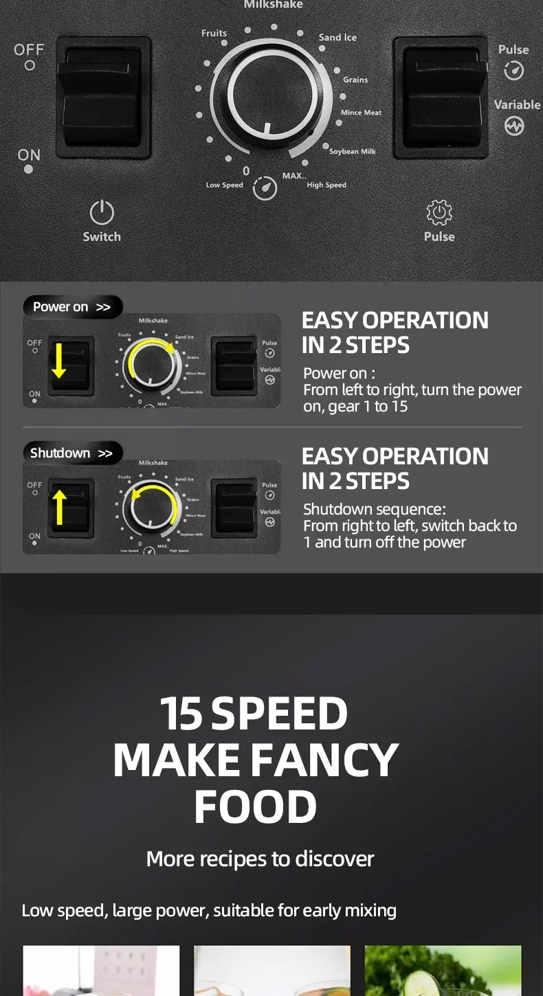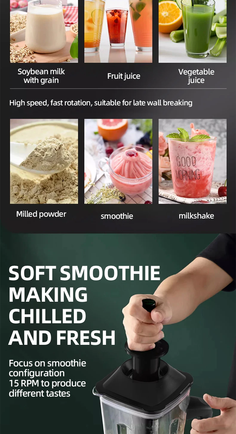 2 In 1 Heavy Duty Commercial Blender Stationary Mixer Ice Smoothies Professional High Power Food Processor Kitchen Appliances