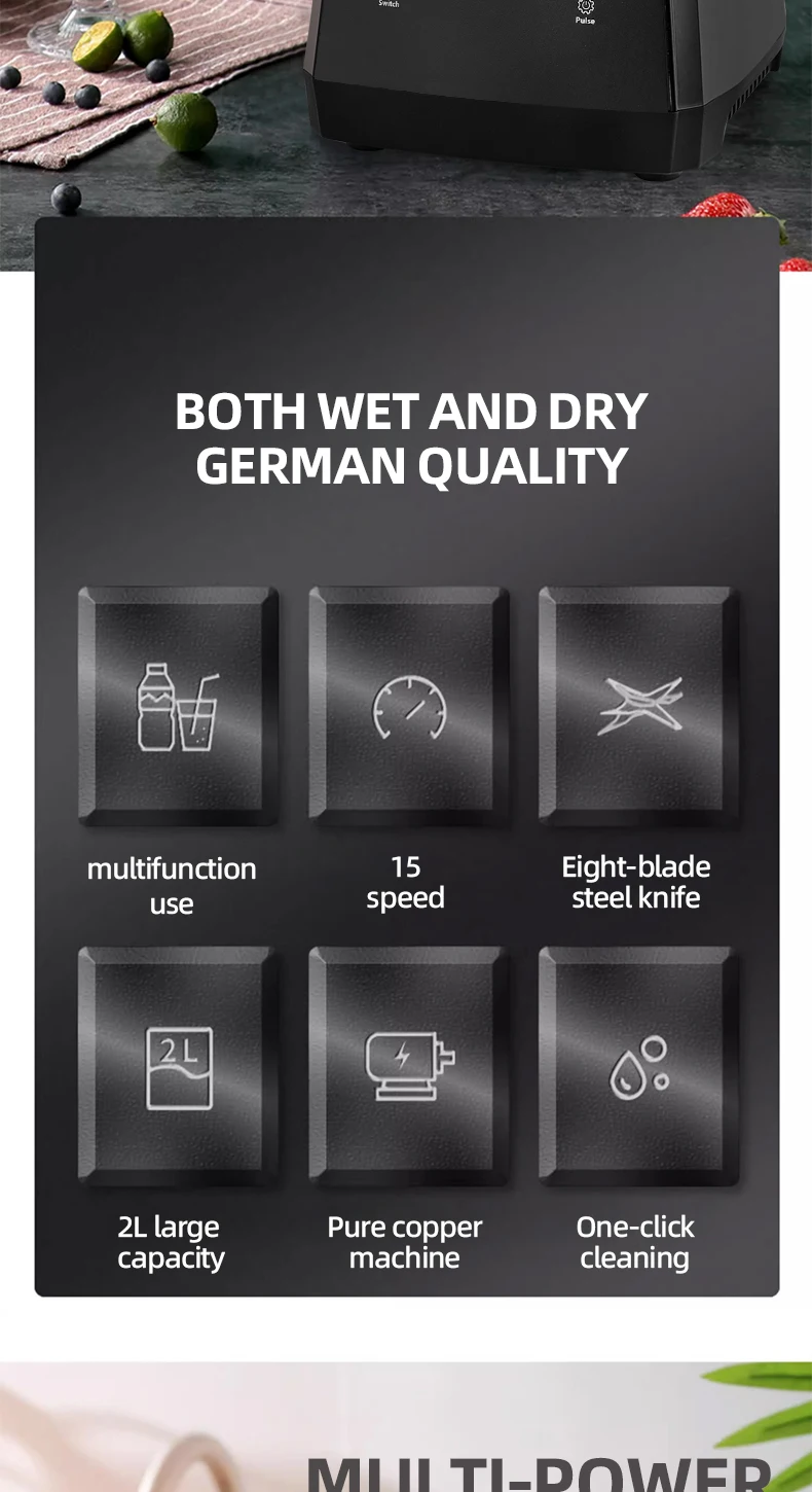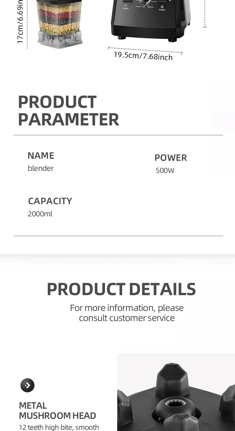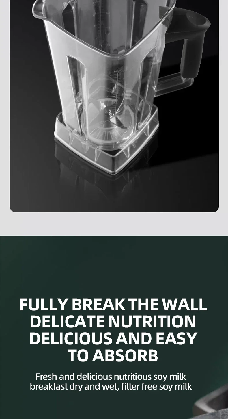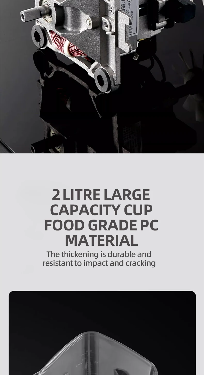 1. A machine with two cups, large cup 2L capacity, grinding cup 0.6L capacity; 6 pages of wall-breaking knife set, the crushing effect is more powerful and delicate; the use of dregs-free wall-breaking effect, thickened PC cups resistant to falling;
