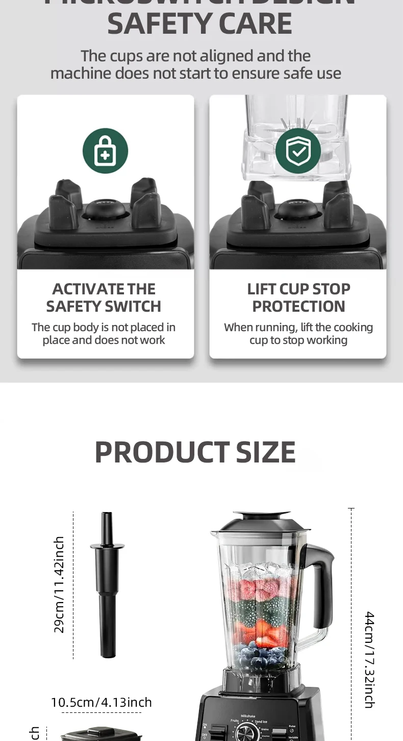 3. The operation is more simplified; the product is set with a safety switch, take the cup power failure protection; mixing cup and grinding cup can be easily disassembled.