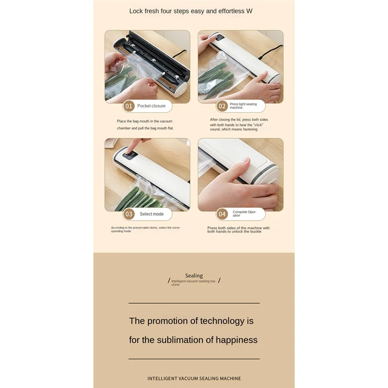 Smart automatic detection of wet and dry modes One-touch vacuum food preserver intelligently adjusts suction for marinated meats, soups or dry snacks, ideal for beginners and busy families
