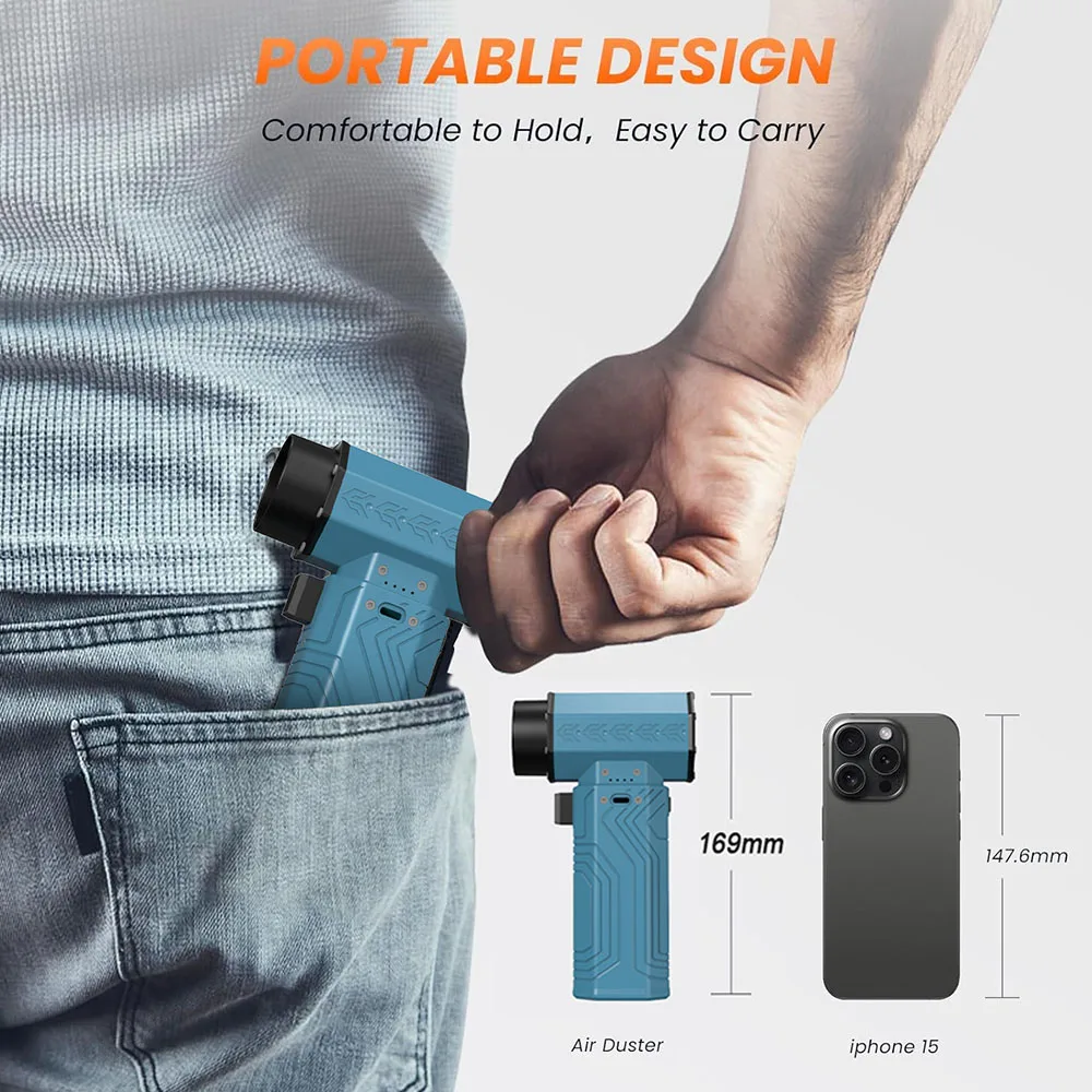 Ditch traditional compressed air cans—energy-saving, eco-friendly, and cost-effective. Perfect for pet drying, furniture dusting, leaf blowing, inflating, and more—versatile and hassle-free.