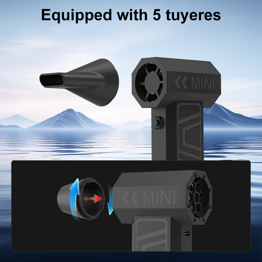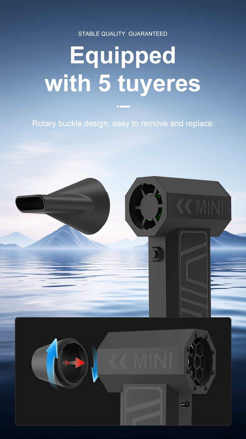 Easy to use operation:Knob stepless speed regulationThe user-friendly design of portable turbo fans ensures easy functionality. In addition, the charging board also has safe and reliable charging protection and overheating protection functions. The internal brushless motor can achieve high speeds of up to 350000RPM (revolutions per minute).