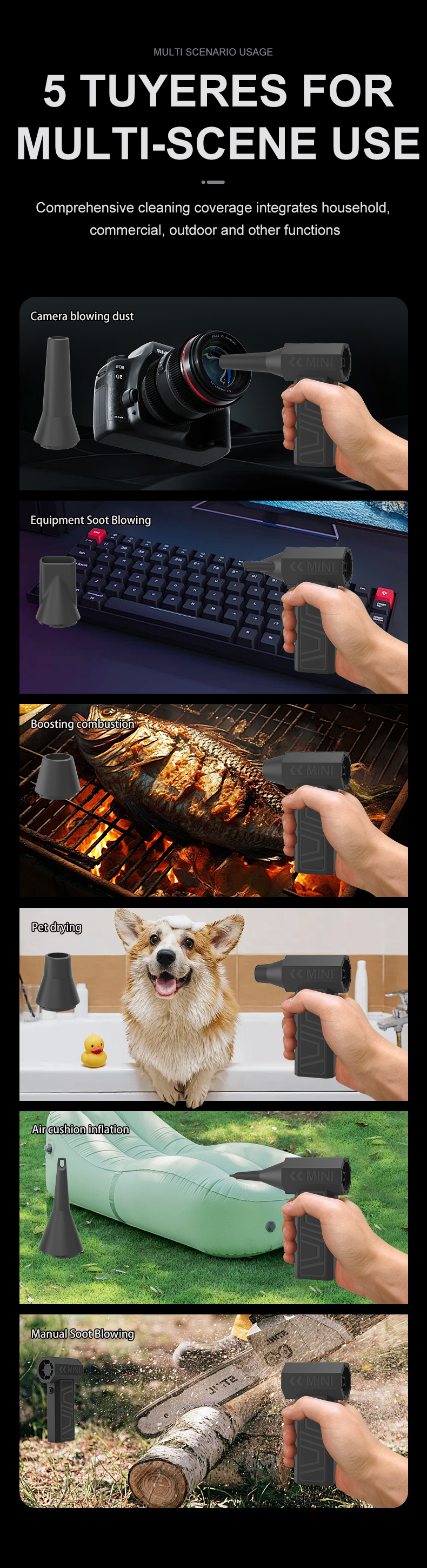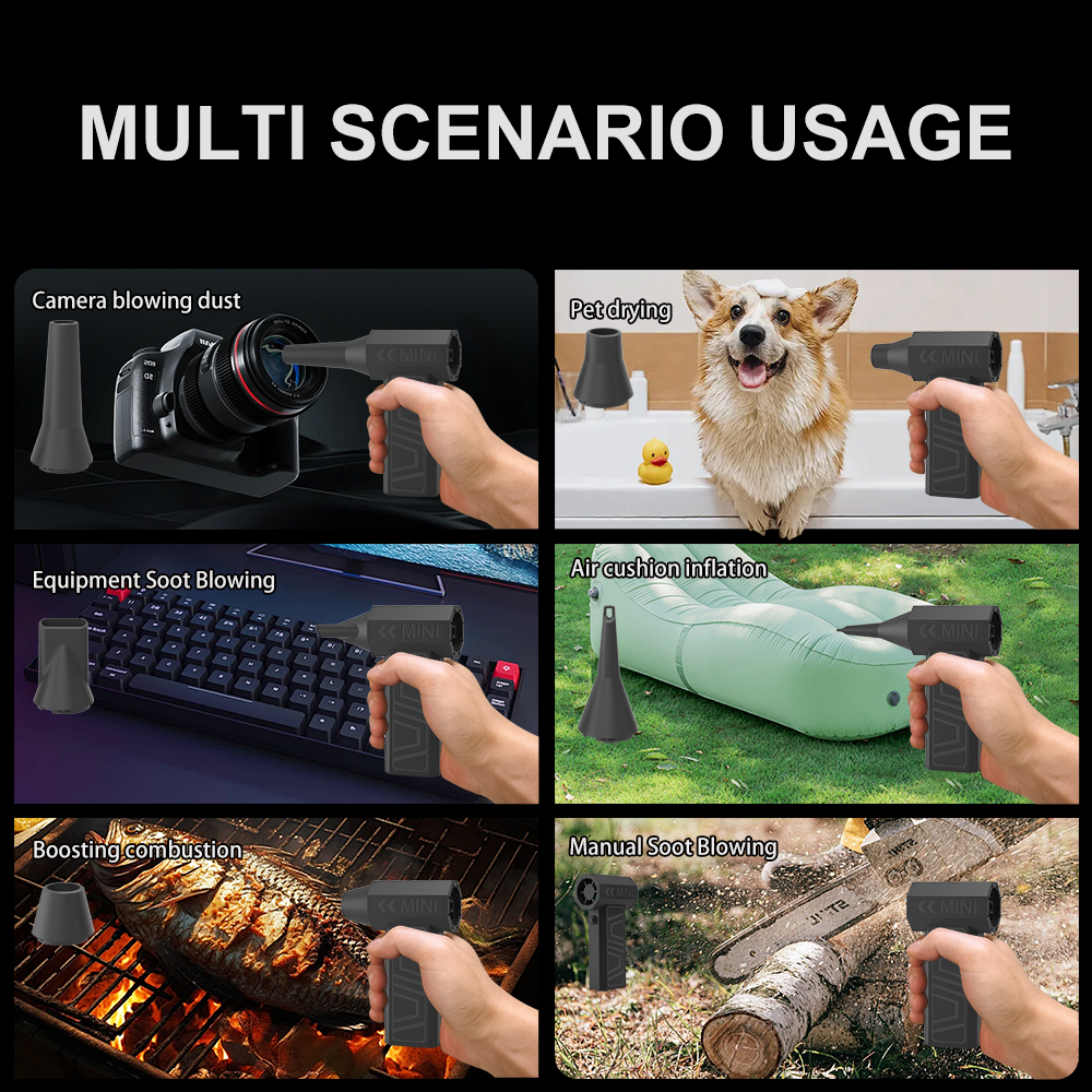 Wide Usage:Air cushion blowing and suction, computer equipment cleaning, industrial dust blowing, charcoal burning to support combustion, car blowing and snow blowing, film studio shooting and wind making, drying pets, and many other uses.