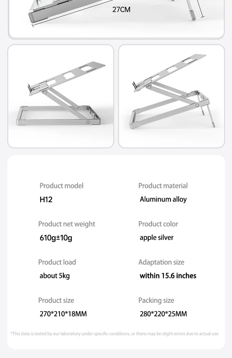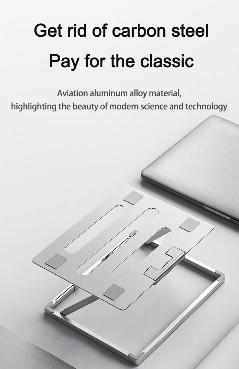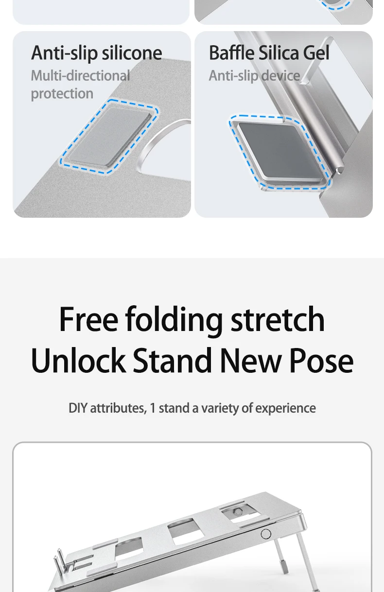 Stable & Sturdy: Made of high quality aluminum alloy, the adjustable laptop stand is more sturdy and durable. It can support up to 9.98 lbs without shaking. There are 6 silicone anti-slip pads on the front panel and hooks, the bottom is also added with a silicone anti-slip design to hold your laptop firmly in place.