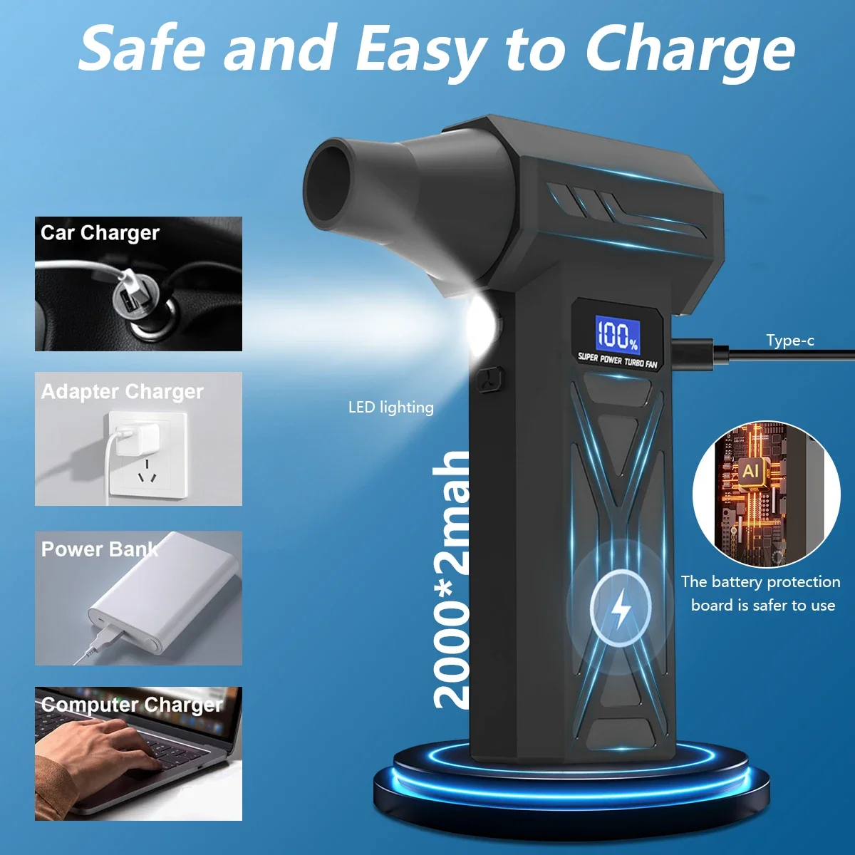 New 2025 Air Blower 110000Rpm 4 Gear Adjustable Turbo Jet Blower With Led Light Battery Display Cordless Compressed Air Duster